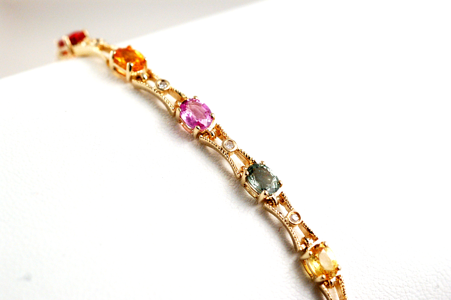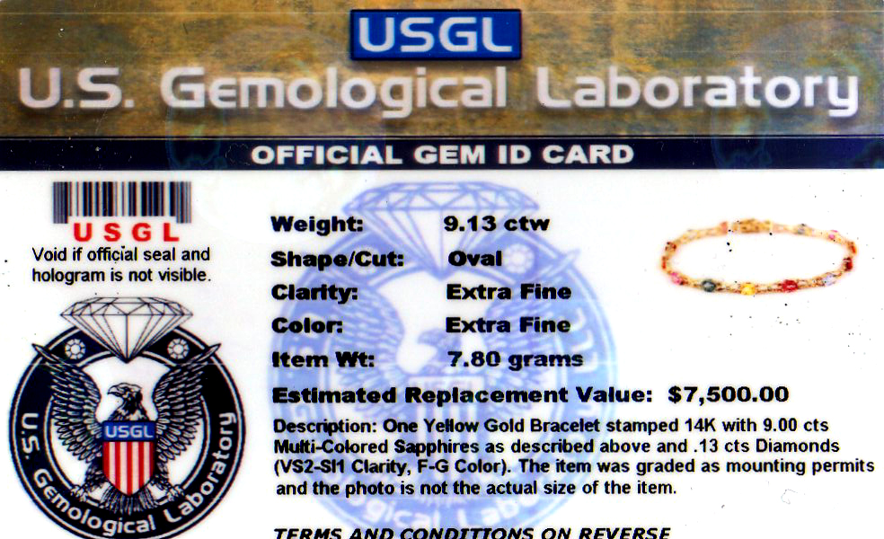 $7500 ELEGANT GENUINE 9CTW MULTI COLOR SAPPHIRE 14K SOLD GOLD BRACELET