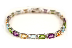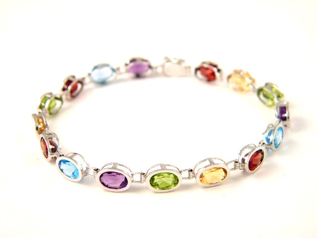 $480 23.4 CARATS GEUINE MULTI-GEMSTONE SILVER BRACELET