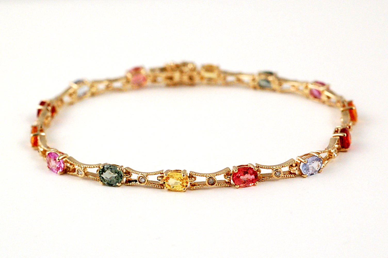 $7500 ELEGANT GENUINE 9CTW MULTI COLOR SAPPHIRE 14K SOLD GOLD BRACELET